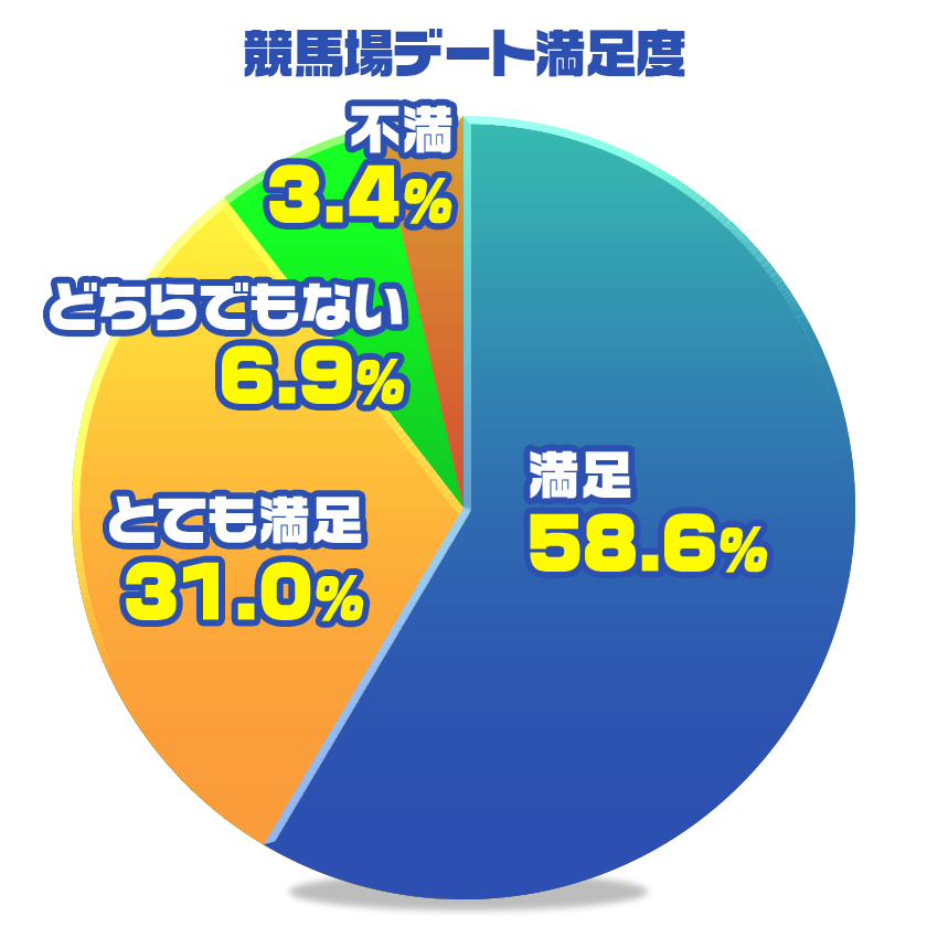 競馬デートの満足度を調査したところ、9割が満足したと回答していました。