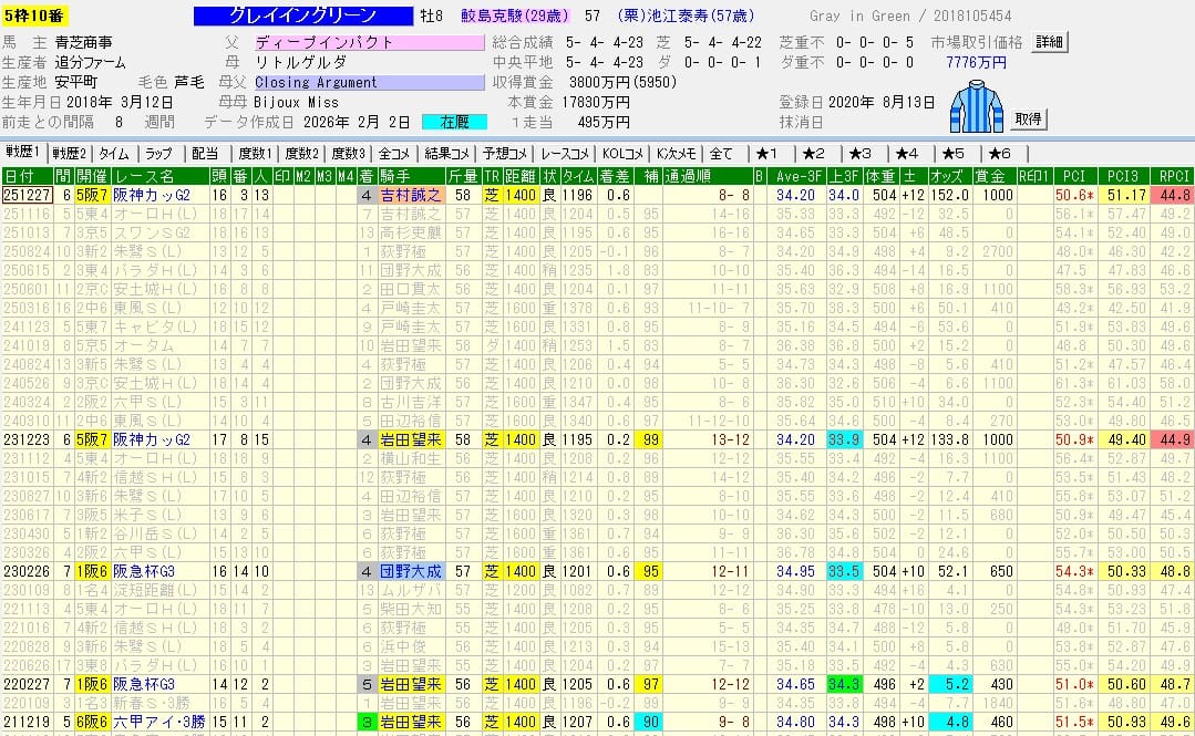 | 前走 | 2025シルクロードステークス(G3・京都芝1200m) 除外 |