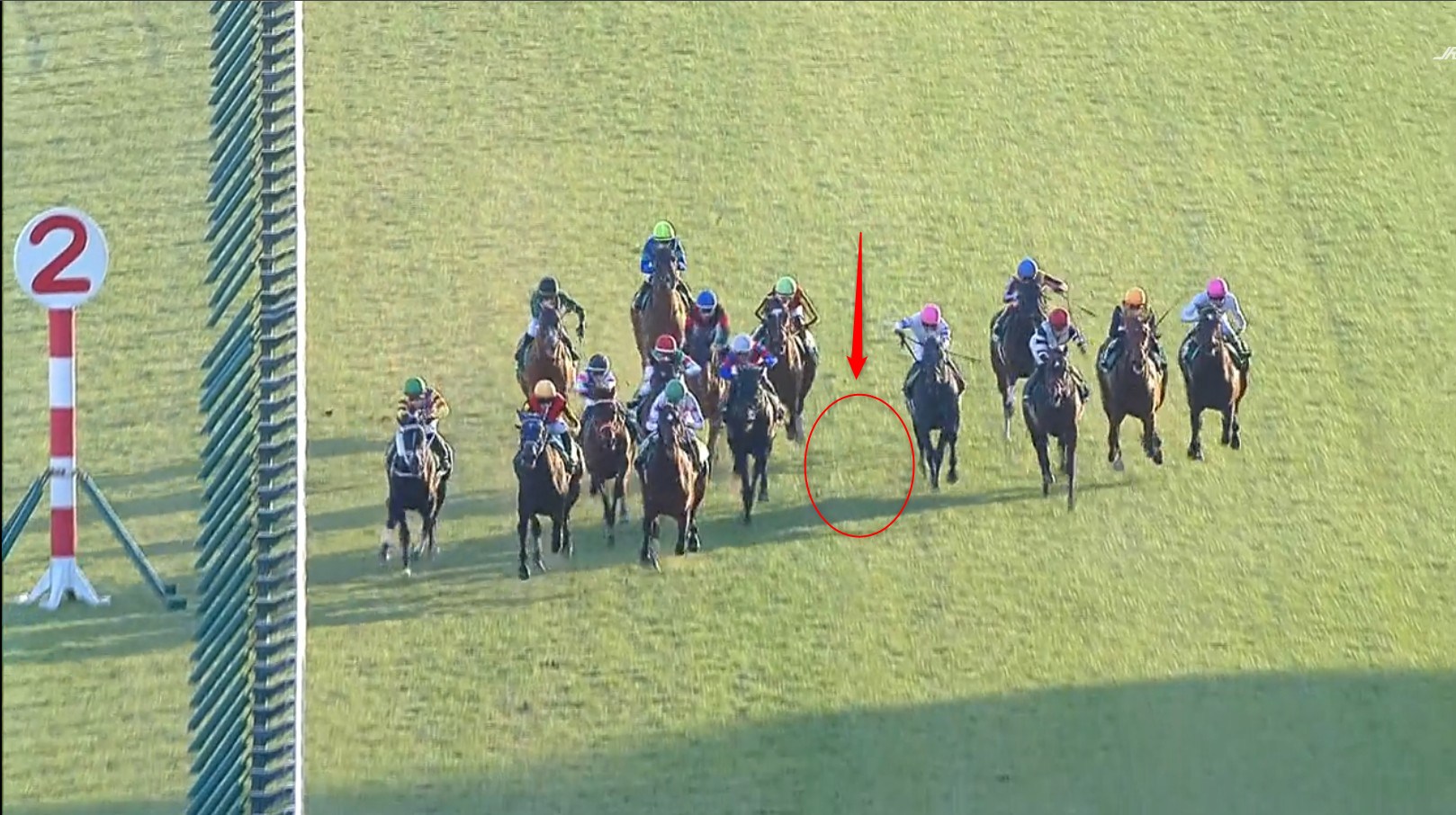 だからこそこれを後方から勝ち切ったグリーンエナジーは相当な器かもしれません。1頭だけ33秒8の上りを使ってぶち抜いており、ラップも11秒台を記録。瞬間の反応と加速力はピカイチです。改めて見直してもその強さは際立ちます…ってアレ?