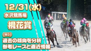 2025年12月31日(水)水沢競馬場で開催予定の桐花賞を競馬ライター蒼井隼が徹底分析!同レースの過去データを収集・分析した結果から傾向や有力馬を解説していきます。最後には蒼井の予想印を公開中。桐花賞で稼ぎたい方はぜひ参考にして下さい。