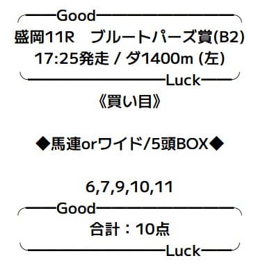 | 2025/10/27 | 盛岡11R | ◯ | 1,390円 | 139% |