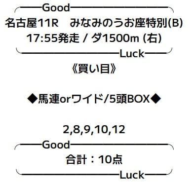 | 2025/10/14 | 名古屋11R | △ | 210円 | 21% |