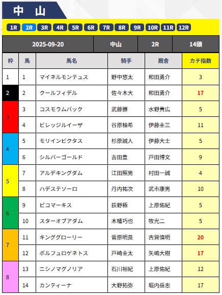 2025年9月20日中山2R | △ | 310円 | 31% |