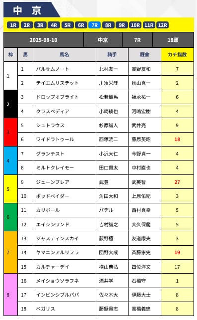 2025年8月10日中京7R | ◯ | 7,600円 | 760% |