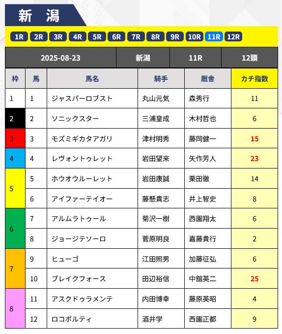 2025年8月23日新潟11R | ◯ | 1,970円 | 197% |