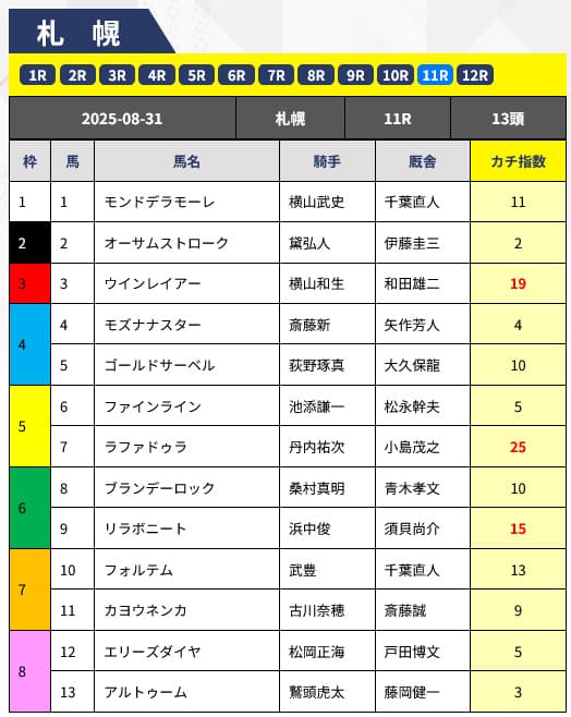 2025年8月31日札幌11R | ◯ | 2,270円 | 227% |