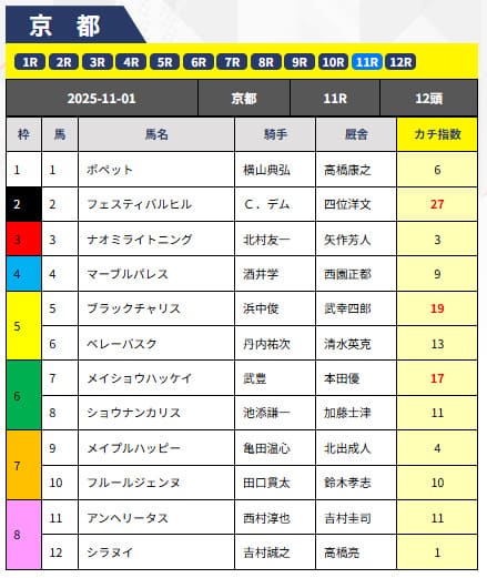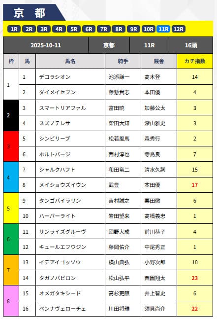 | 2025年11月16日京都11R | △ | 610円 | 61% |