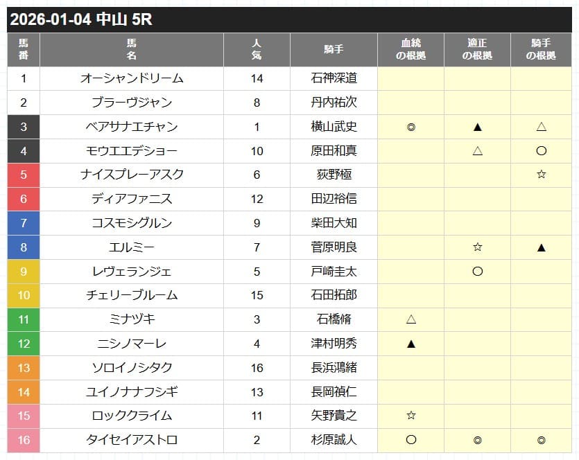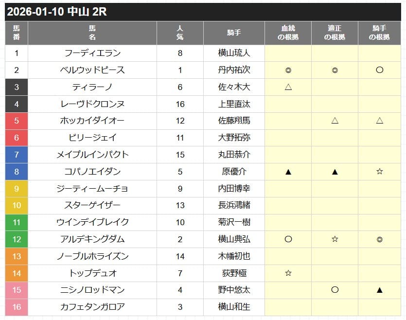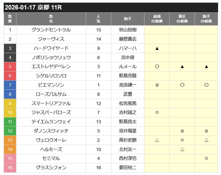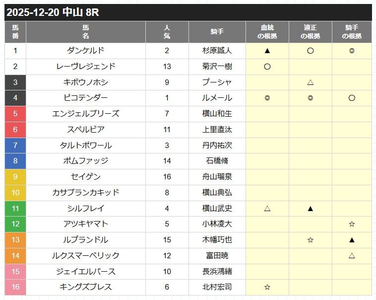 ▲(単穴) 能力的に勝ち切る可能性がある穴候補。展開次第で逆転も。
