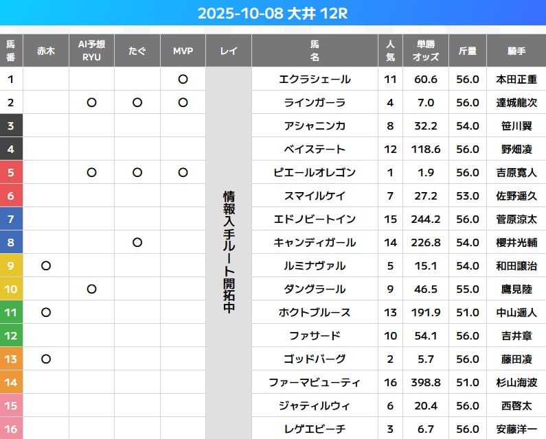 5ローカル行脚で水沢8Rを10点買いで17万超!人気どころを軸に据えながら、11人気ブルーシャトーを3着で押さえて高配当に。中央の重賞クラスから地方ローカル戦まで、舞台を問わず的中を出してくれる対応力はさすが。平日開催でも結果を残せるのは、普段から馬券を楽しむ自分にとってありがたい存在です。