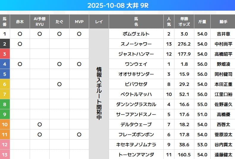 これなら予想印が多い馬をそのまま買えば、勝てるのではないでしょうか…?そう思わせる程に全員の予想の精度が高いですね。