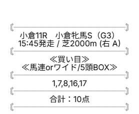 買い目を見ると、上位人気を手堅く押さえつつ、波乱を想定した穴馬もしっかりと組み込んでいます。