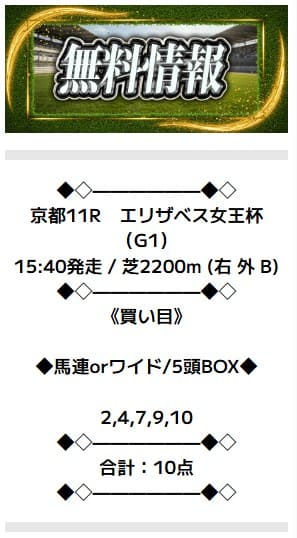 | 2025年11月16日京都11R エリザベス女王杯 | ワイド5頭ボックス | ☓ | – | – |