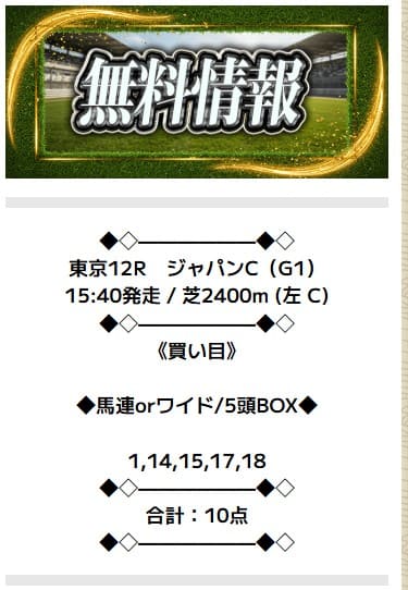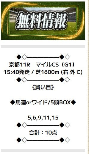 | ◯ | 予想は当たるのか? | 無料予想・有料予想どちらも的中 |