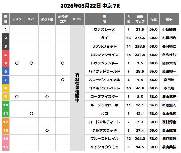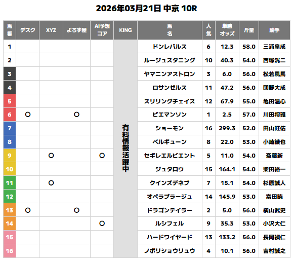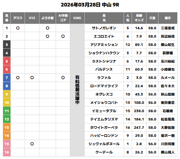 | ◯ | 予想は当たるのか? | 無料予想・有料予想どちらも的中 |
