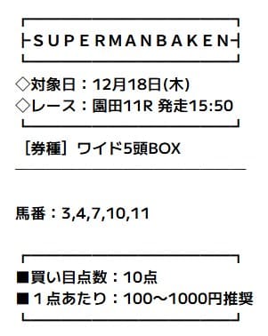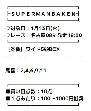 当然予想数が多い方が的中する確率は上がりますので、とにかく投資を抑えたい方以外は、スーパー万馬券を利用することをおすすめします。