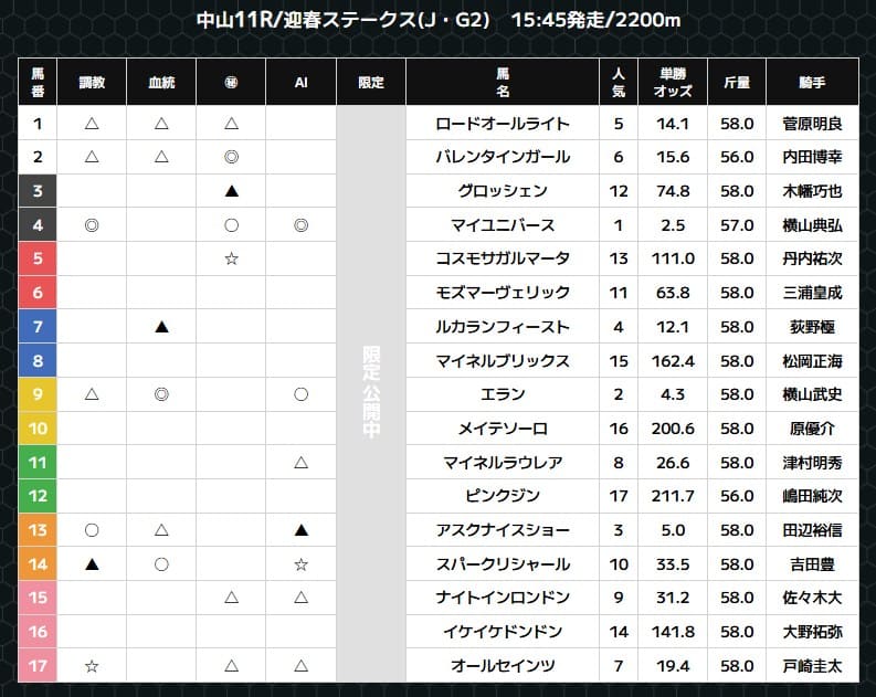 | ◯ | 予想は当たるのか? | 無料予想・有料予想どちらも的中 |