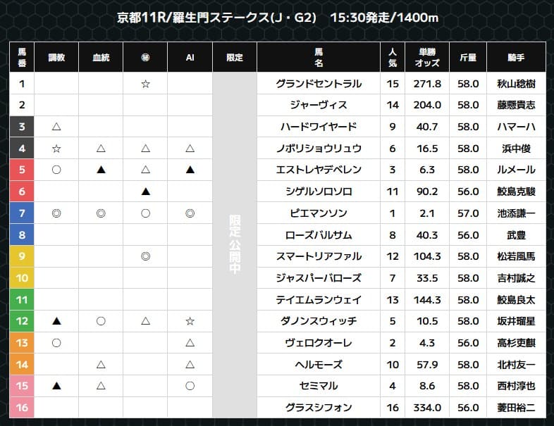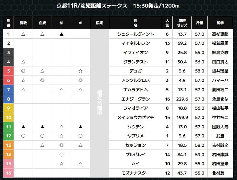 | 対象レース | 11/23(日) 京都11R マイルチャンピオンシップ |