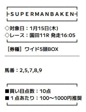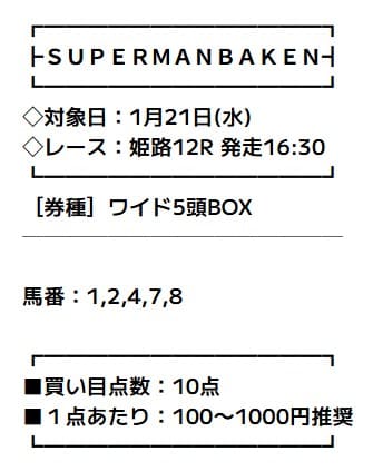 スーパー万馬券の特徴でもある「高額狙い」を体感した人が日々増え続けているようですね。ぜひ予想を利用してその1人になって下さい。