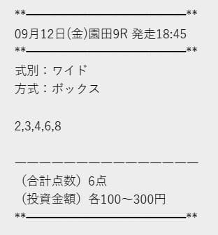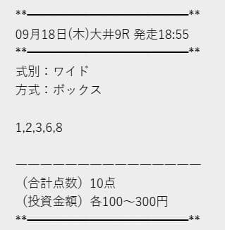 | 2025年9月18日 | 大井9R | 〇 | 2,020円 | 202% |