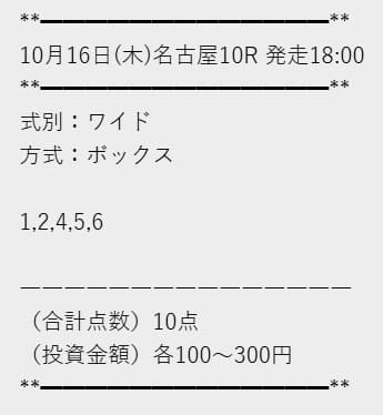| 2025年10月16日 | 名古屋10R | × | 0円 | 0% |