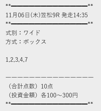 | 2025年11月6日 | 笠松9R | △ | 870円 | 87% |