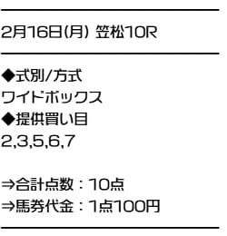 2月16日(月)笠松10R キャプチャ 11,200円 112%