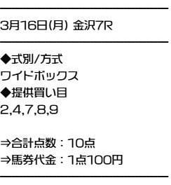 3月16日(月)金沢7R キャプチャ 7,700円 77%