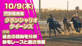 地方競馬重賞予想 グランシャリオクイーンズ2025予想!過去の傾向と前哨戦から読み解く有力馬を公開! 2025年10月9日(木)門別競馬場で開催予定のグランシャリオクイーンズを競馬ライター蒼井隼が徹底分析!同レースの過去データを収集・分析した結果から傾向や有力馬を解説していきます。最後には蒼井の予想印を公開中。グランシャリオクイーンズで稼ぎたい方はぜひ参考にして下さい。 2025.10.07 2025.10.09 地方競馬重賞予想