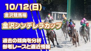 地方競馬重賞予想 金沢シンデレラカップ2025予想!過去傾向と前哨戦から読み解く有力馬を公開! 2025年10月12日(日)金沢競馬場で開催予定の金沢シンデレラカップを競馬ライター蒼井隼が徹底分析!同レースの過去データを収集・分析した結果から傾向や有力馬を解説していきます。最後には蒼井の予想印を公開中。金沢シンデレラカップで稼ぎたい方はぜひ参考にして下さい。 2025.10.10 2025.10.11 地方競馬重賞予想
