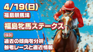 2026年4月19日(日)福島競馬場で開催予定の福島牝馬ステークスを予想します!同レースの過去10年のデータや参考レースを分析し、大胆かつ的確な狙い馬をピックアップ。データだけでは見えない意外性や秘めたポテンシャルを読み解き、あなたの馬券選びをサポートします。
